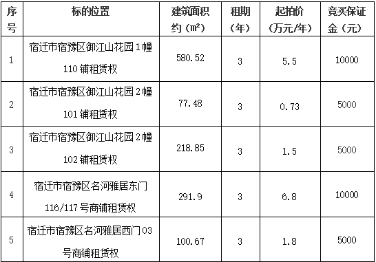 受委托,本公司对下列商铺租赁权进行公开拍卖,现将有关事项公告如下:一、拍卖标的